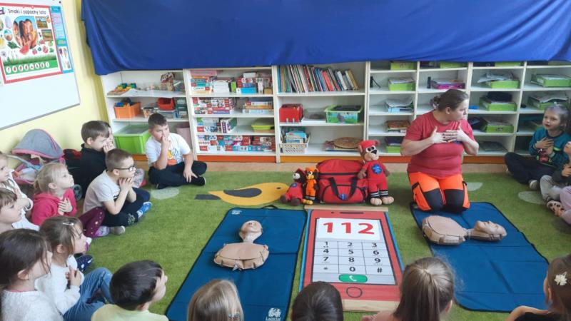 Programy profilaktyczne i zdrowotne - organizujemy warsztaty dotyczące higieny i zdrowego żywienia, zajęcia z pierwszej pomocy dostosowane do wieku dzieci, spotkania ze specjalistami ( policjant, strażak, stomatolog ).